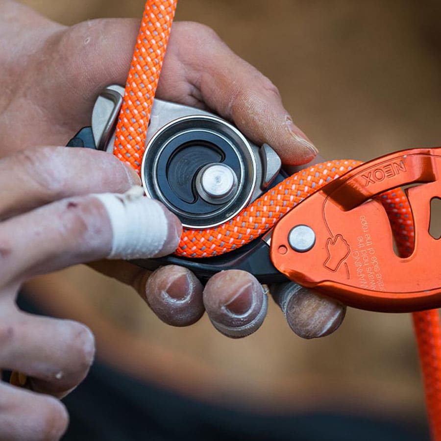 A solid set of carabiners is indispensable. In addition to lightweight carabiners to organize your gear, you’ll need three or four screw-lock carabiners, ideal for setting up belays or rappelling. Make sure you also have a belay carabiner compatible with your belay device.