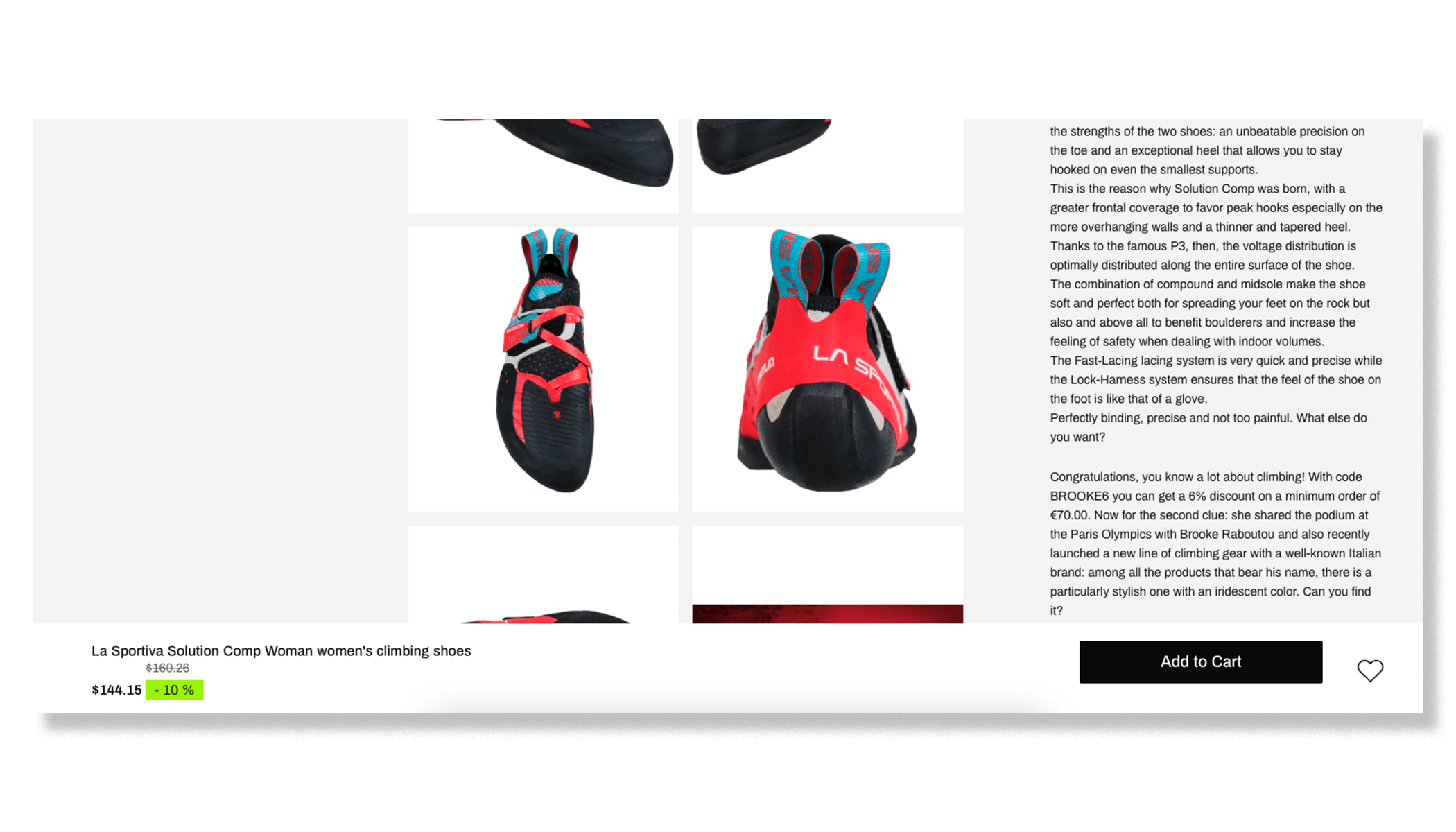 the first clue was the shoes used by Olympian Brooke Raboutou on the route Erebor, 9b+: of course these are La Sportiva's Solution Comp WMN!