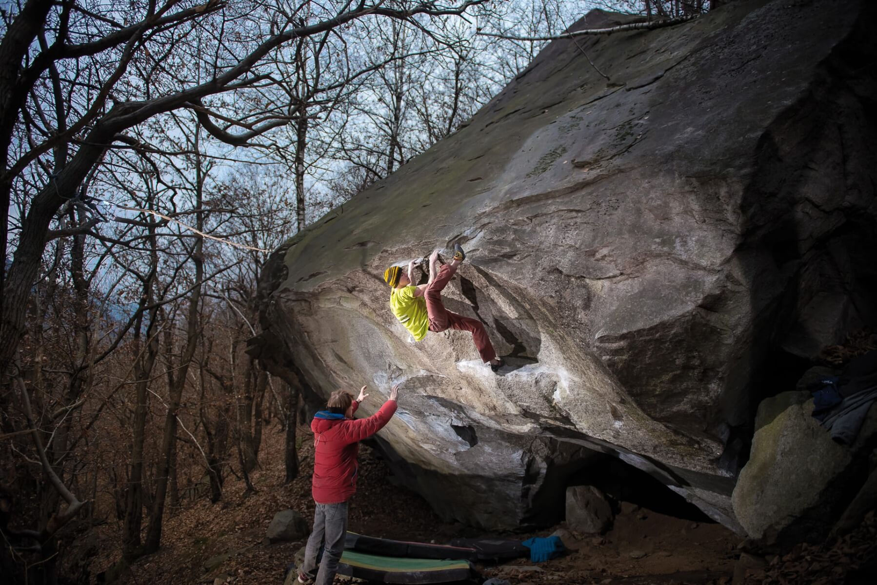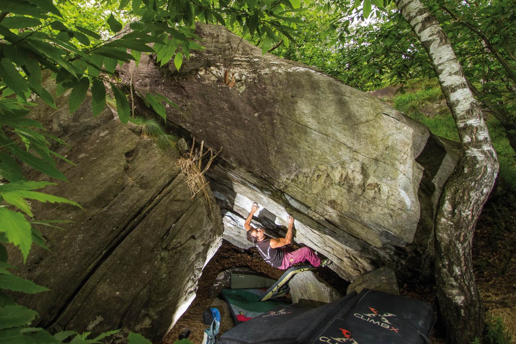 Ideal for climbers around 6C, Nivo Bassa features easy and intermediate lines for unforgettable spring and autumn days. Compared to Centrale, the landings require more experience in surface setting and spotting. The shaded woods provide optimal conditions in early autumn or late spring. The guidebook highlights many intermediate boulders, making Nivo Bassa and Nivo Alta essential for climbers below 7A.