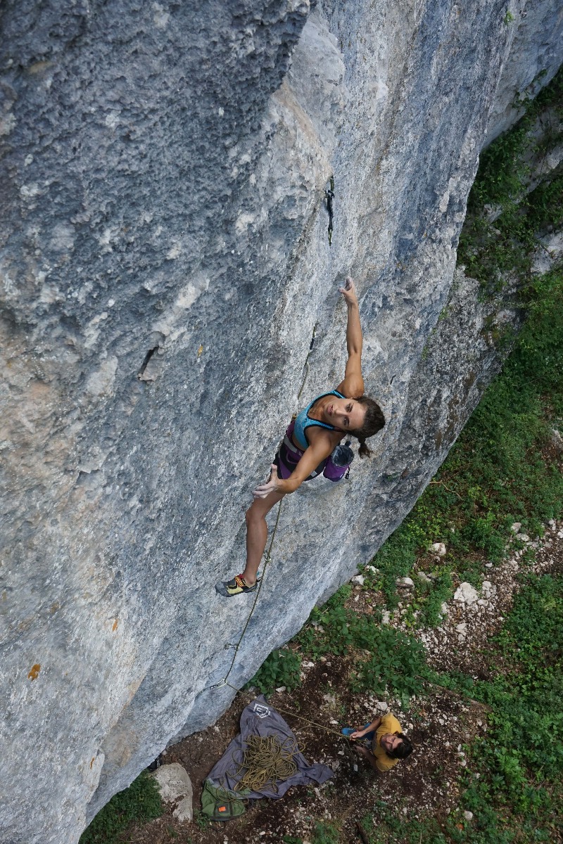 Dopo il parto, passata la prima nuova e intensa settimana a casa con Lisa, ho sentito che se non avessi ripreso in mano la situazione sarei rimasta vittima di quella piccola ed esigentissima neonata! Certo, una settimana non è niente, ma percepivo il bisogno di ritrovare me stessa. Non è facile da spiegare, mi sentivo come svuotata completamente (a tutti gli effetti) e catapultata in una nuova vita in cui vedevo sfumare via la mia routine e la mia libertà. Quindi, con le ossa rotte ho iniziato dolcemente e con coscienza a fare esercizi a casa. Da lì, ho continuato sempre appena avevo anche solo dieci minuti in cui Lisa non era attaccata a me. È stata dura, ma importante perché la stanchezza è tanta e tutti ti invitano al riposo, ma allenarmi mi ha sempre dato la carica per poterla accudire ancora meglio. In quel momento anche una sola mezz'ora di "svago" fa davvero tanto bene. Per ricalibrare gli equilibri ci sono voluti diversi mesi, ma ho ripreso a scalare subito (i primi tempi in top rope) anche se facevo molta fatica. Grazie al mio osteopata mi sono ripresa il mio corpo e li, veramente mi sono sentita grande! Una climber e mamma a tutti gli effetti! Ho ritrovato la forma rapidissimamente, e tanta era ed è la voglia di fare, e così poco il tempo a mia disposizione che mi sembra di scalare ancora meglio di prima e con più determinazione!!
