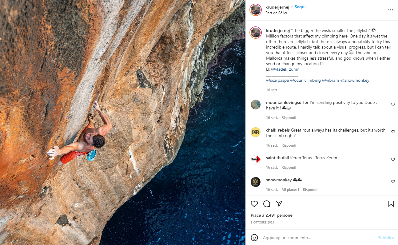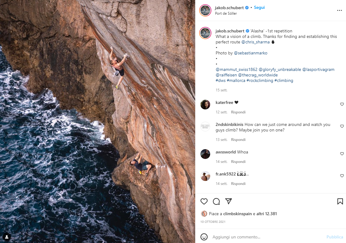 Alasha, 9a. Il 2016 è stato un anno di grande affluenza per il Deep Water Solo a Maiorca: anche Chris Sharma è tornato sull’isola per aprire nuove spettacolari vie come Alasha, di cui si è nuovamente parlato da poco per via della prima ripetizione da parte di Jakob Schubert ( ottobre 2021). Grado proposto 9a!