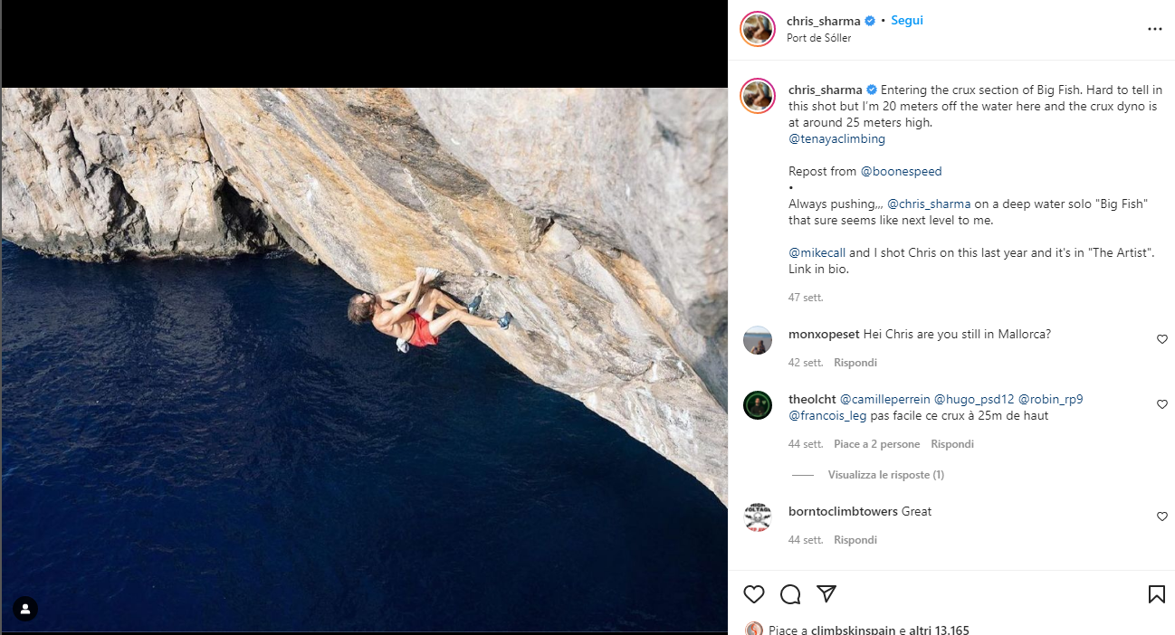 Big Fish, 8c+/9a. Stesso anno e stesso mare, stesso climber: Chris Sharma sale una via definita da lui stesso “tra le più estetiche di Mallorca”. L’esposizione, il pepe del mare mosso sotto e come sempre i movimenti dinamici ad altezze pazzesche creano il mix perfetto per definirla come una delle più belle e difficili di tutta l’isola.