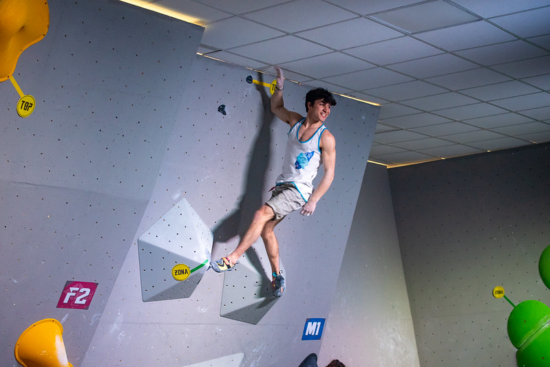 Il podio maschile si conferma anche in questa tappa più combattuto: a differenza di quello femminile, troviamo nuovamente una differenza solo in termini di tentativi tra il primo e secondo. Gara aperta fino all’ultimo secondo: Marcello Bombardi, provvisoriamente in testa alla classifica dopo i primi tre boulder, conquista “solo” della zona sull’ultimo blocco, salito in quattro giri da Pietro Vidi. Pietro Biagini, carico più che mai a salire nuovamente sul podio, conquista la zona in due giri e si porta a casa il top in tre tentativi.