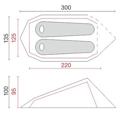 E' dotata di due tessuti, uno interno a rete per garantire un'ottima venitlazione e uno esterno in nylon leggerissimo con un ampia colonna d'acqua (2000 mm). Anche il pavimento ha un ottima impermeabilità, 5000 mm.