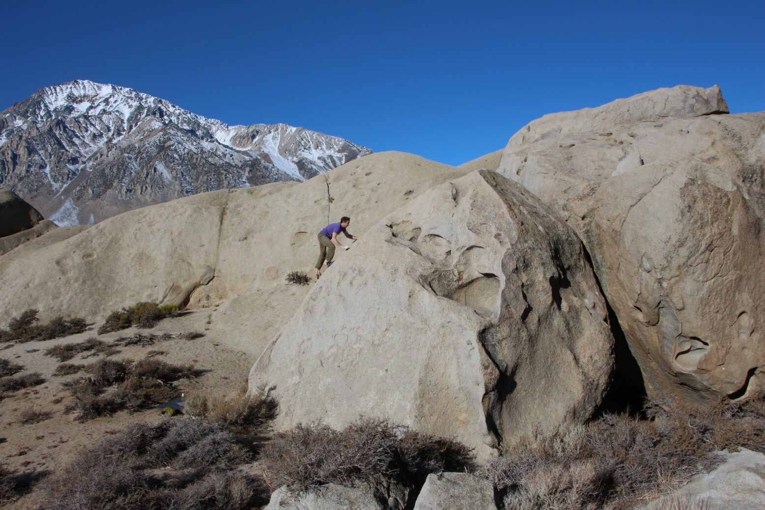 You say “Bishop” and every boulderer's eyes light up. Located halfway between Camp IV and Red Rock, it is definitely one of the most popular places to go bouldering to in winter, also due to the almost surreal beauty of the landscape and the perfection of its boulders. The California climate, often characterized by clear skies and extremely low humidity, makes it possible to climb here in the middle of winter without suffering too much from the cold. In a region with such a favorable climate, the main bouldering area, namely the Buttermilk area, could not but have a perfect exposure, being in full sun as early as 8 a.m.; an oddity for European climbers who have to deal with shaded exposures and such short days that we do just in time to warm up, do two good rounds and pick up the pads.