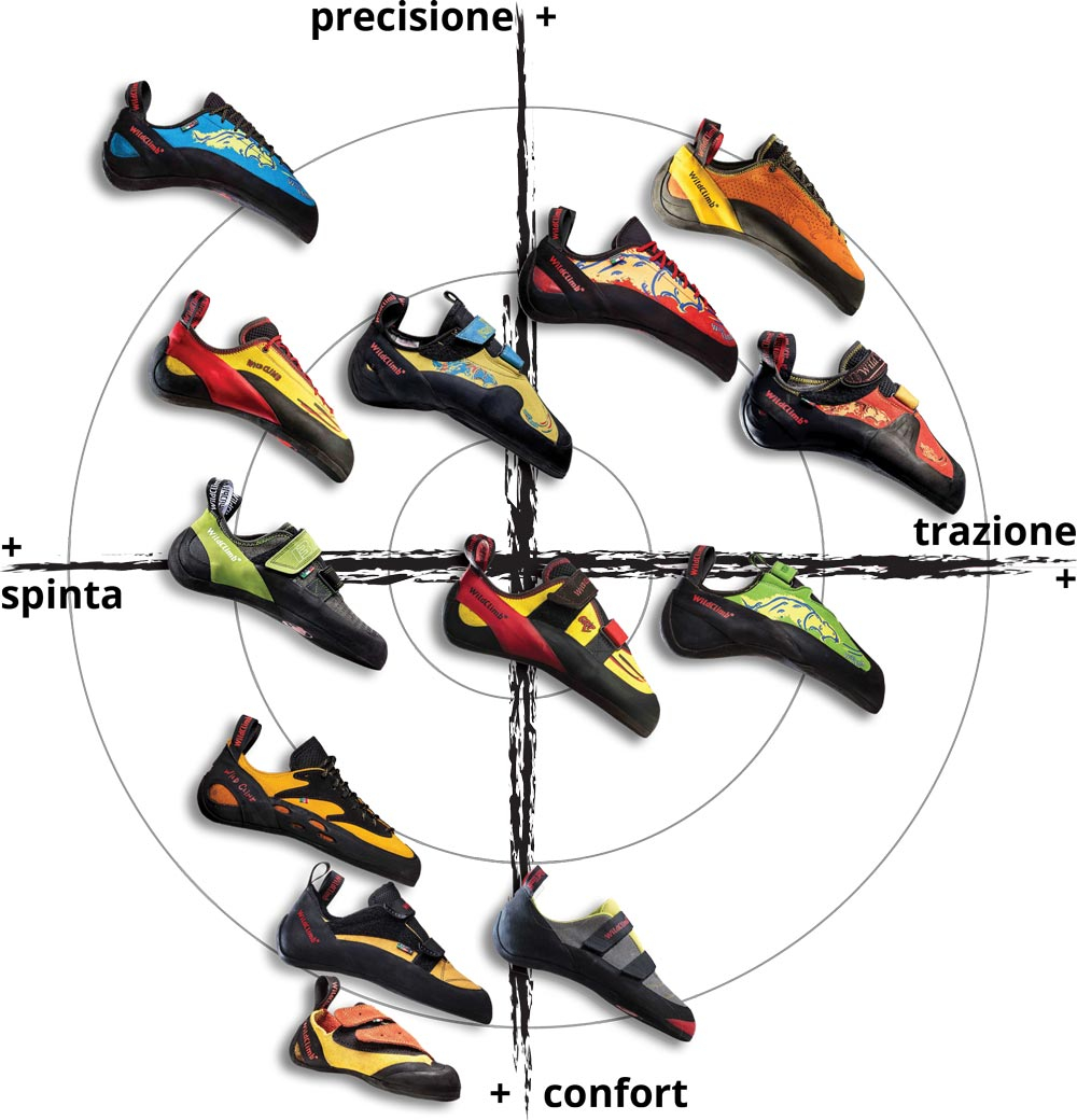 WildClimb Bat is a climbing shoe with a slightly asymmetric shape. This makes this footwear not overly aggressive but also not a basic shape. It is therefore suitable for anyone looking for a comfortable shoe for multi-pitch routes as well as for sport climbing routes.