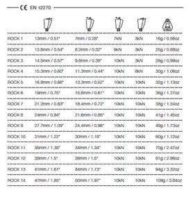 Wild Country Rock Set 11-14 climbing nuts contains very large nuts, ideal for cracks between 34 and 50 mm.